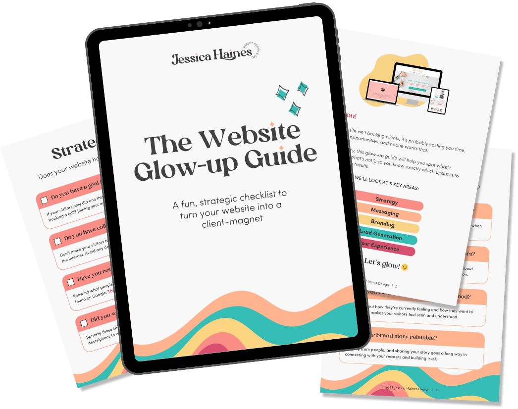 Grab the fun + strategic Website Glow-Up Guide, a checklist designed to help you fix whatβs actually holding your website back (without second-guessing every pixel).